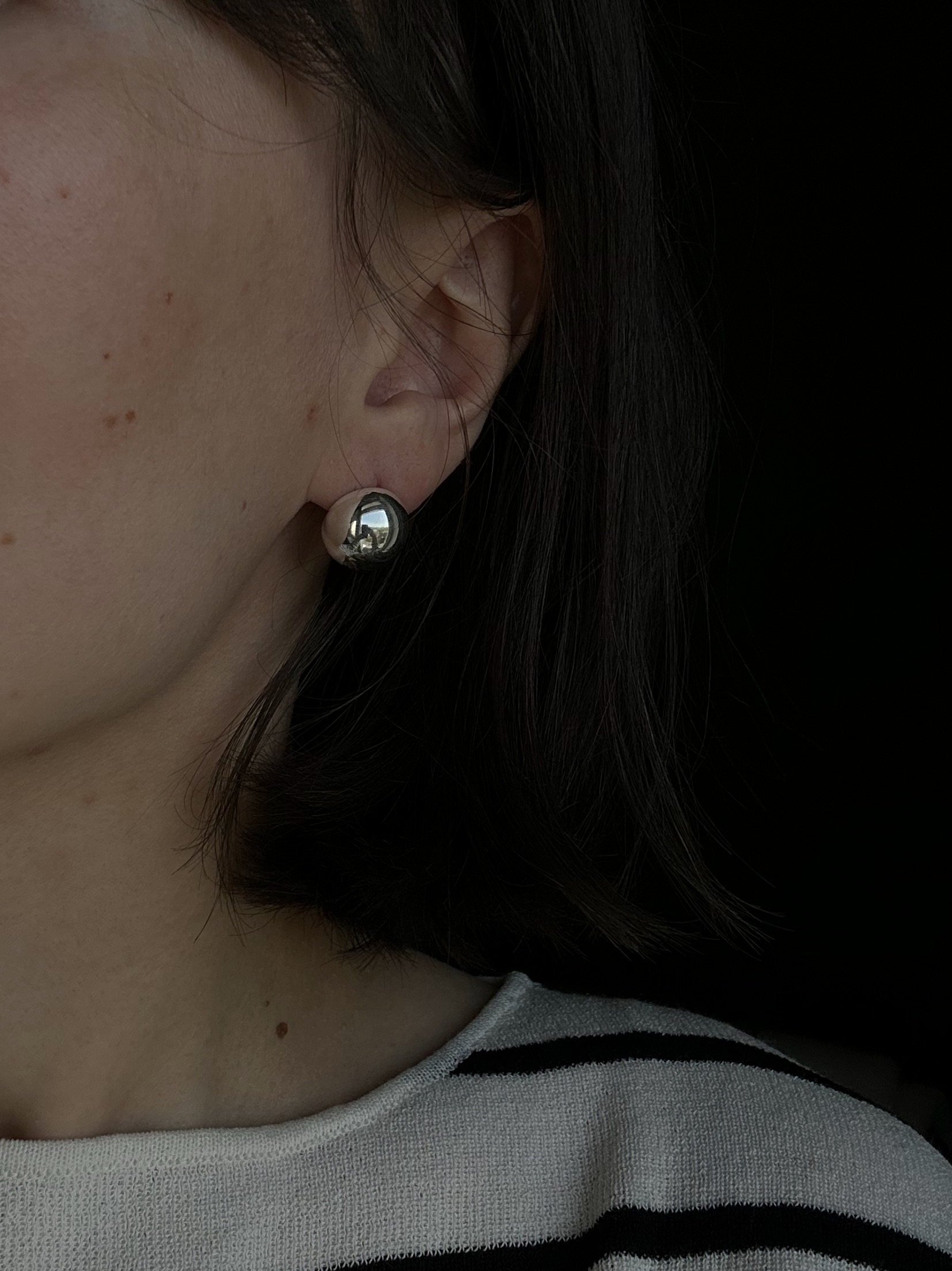 Kolczyki Sphere to przepiękna kula o średnicy 1,5 cm zapinana z tyłu klasycznym barankiem. Całość wykonana ze srebra.