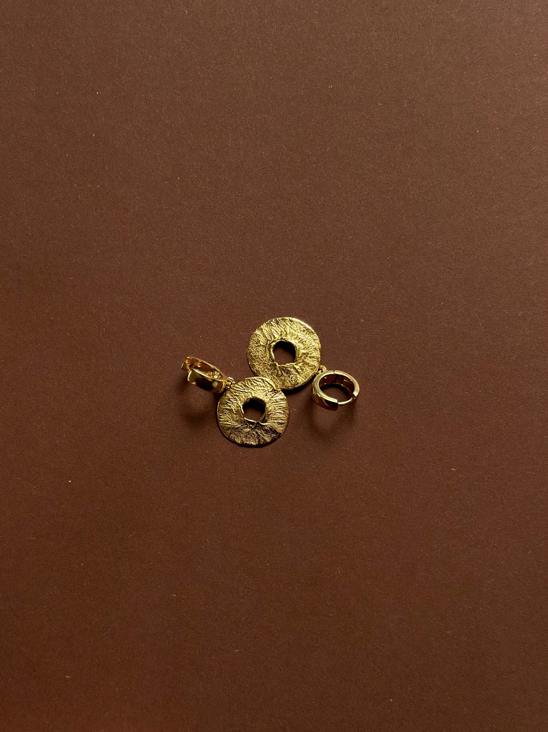 Kolczyki Tutto to masywne bigle z dużymi blaszkami. Całe wykonane z grubo złoconego srebra.