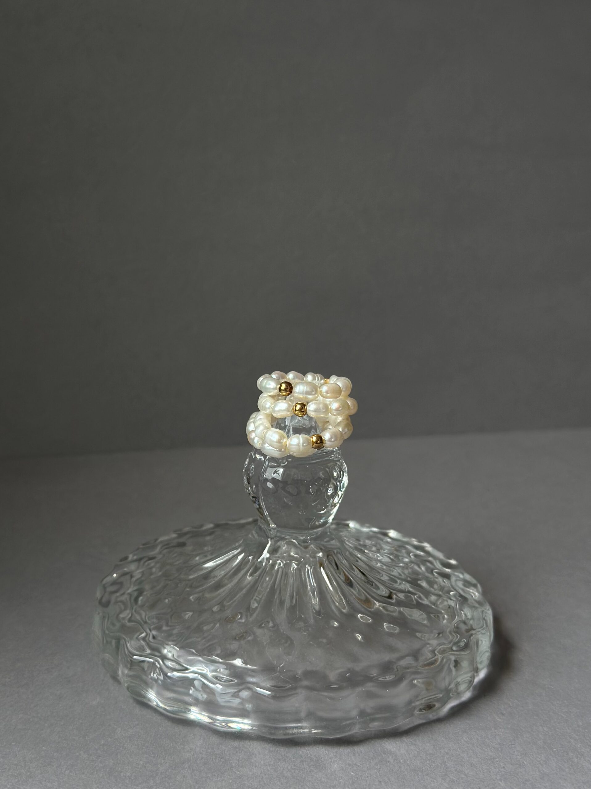 Pierścionek Classy to bardzo klasyczne połączenie pereł oraz kuleczki w kolorze złota. Jednocześnie subtelny i widoczny na palcu.