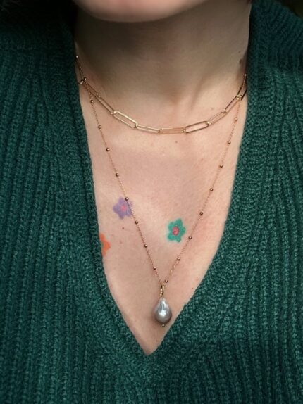 Pierścionek Fake Pearl to sztuczna perła w przepięknym odcieniu oraz srebrny hematyt. Pierścionek nawinięty jest na elastyczną żyłkę jubilerską.