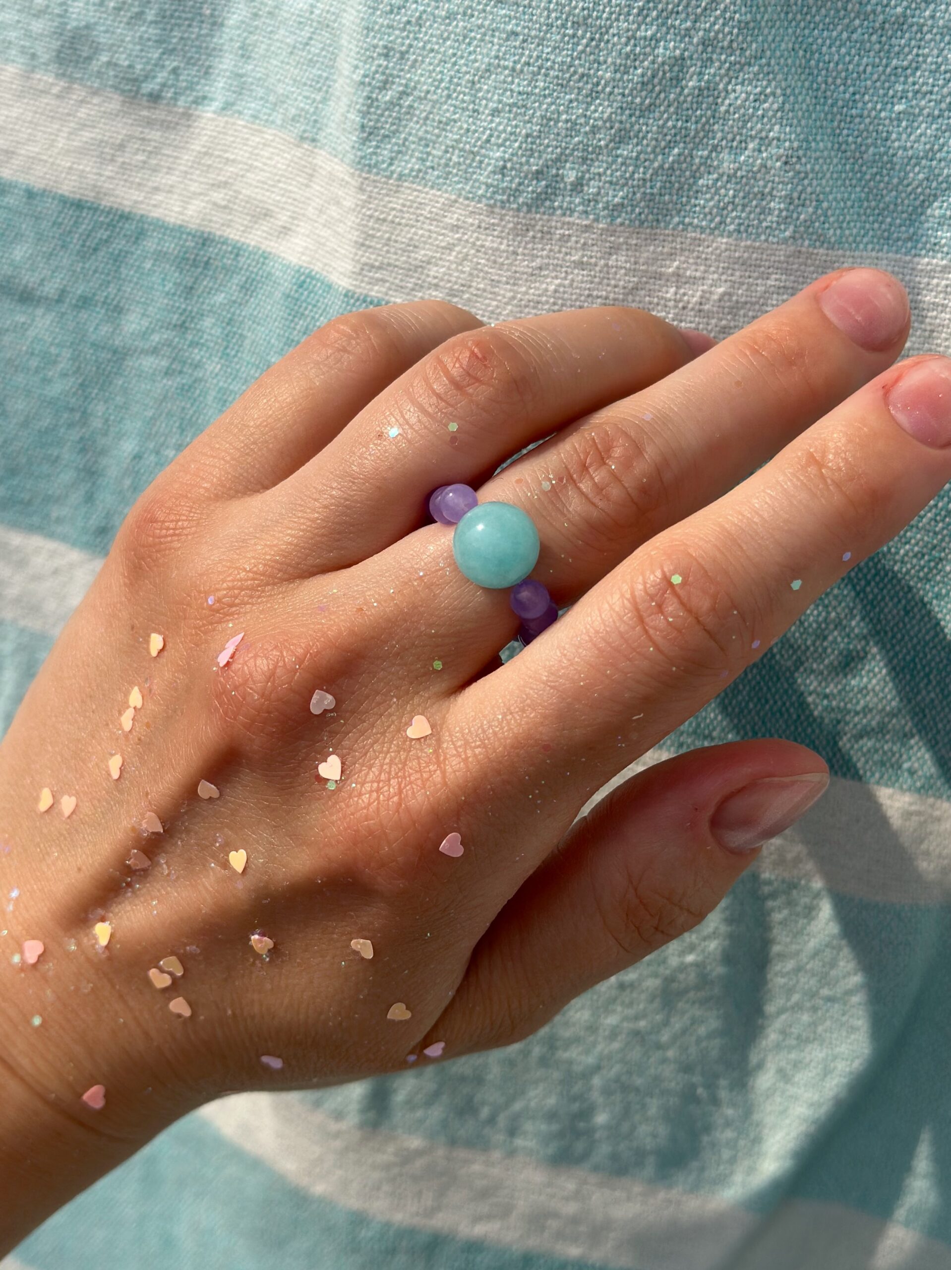 Pierścionki Full of Colors to przepiękne kamienie w wielu intensywnych kolorach. Idealne na lato i do łączenia ich ze sobą. Pierścionki nawinięte są na elastyczną linkę jubilerską, dzięki czemu dobrze dopasowują się do palca.