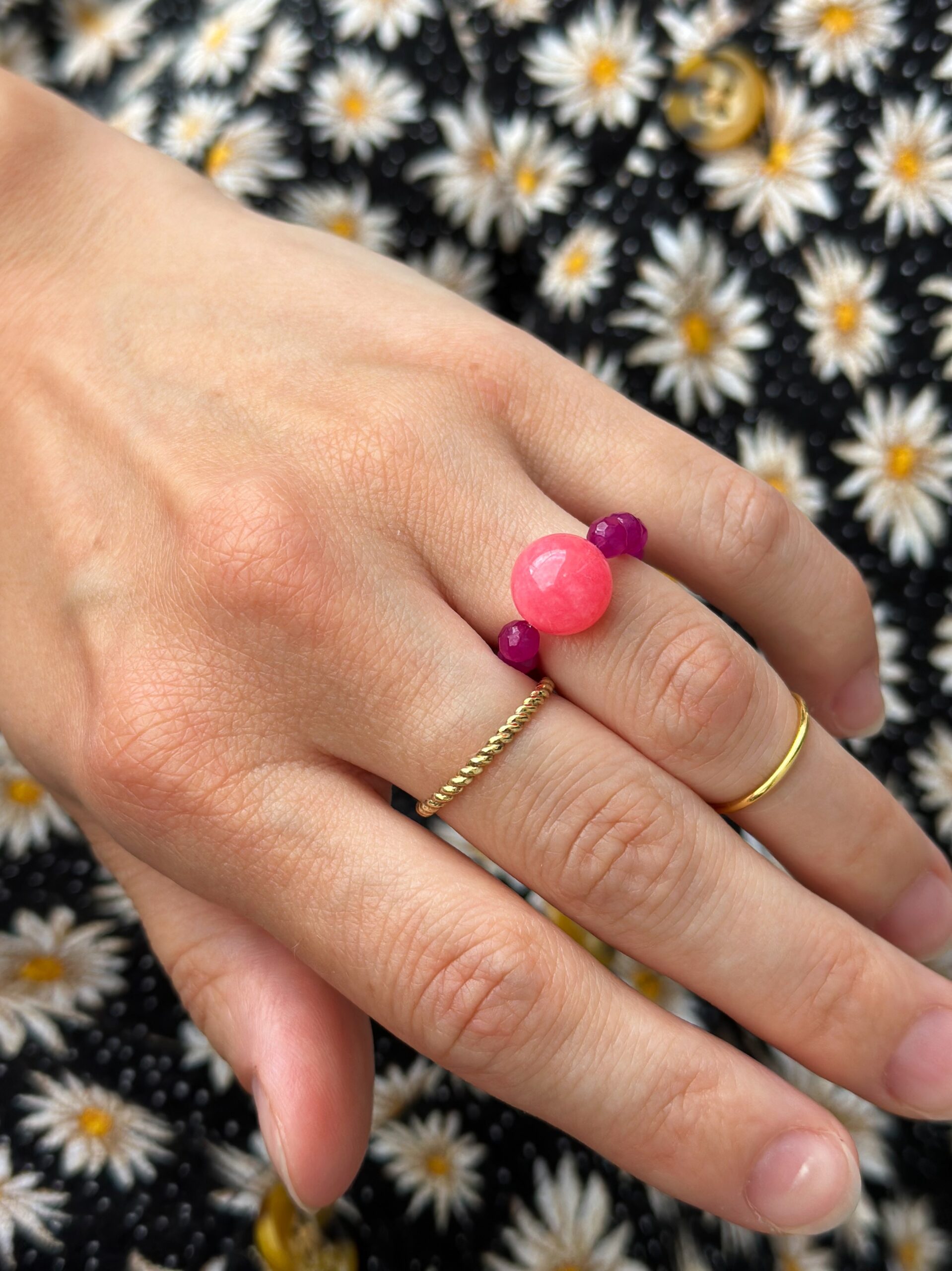 Pierścionki Full of Colors to przepiękne kamienie w wielu intensywnych kolorach. Idealne na lato i do łączenia ich ze sobą. Pierścionki nawinięte są na elastyczną linkę jubilerską, dzięki czemu dobrze dopasowują się do palca.