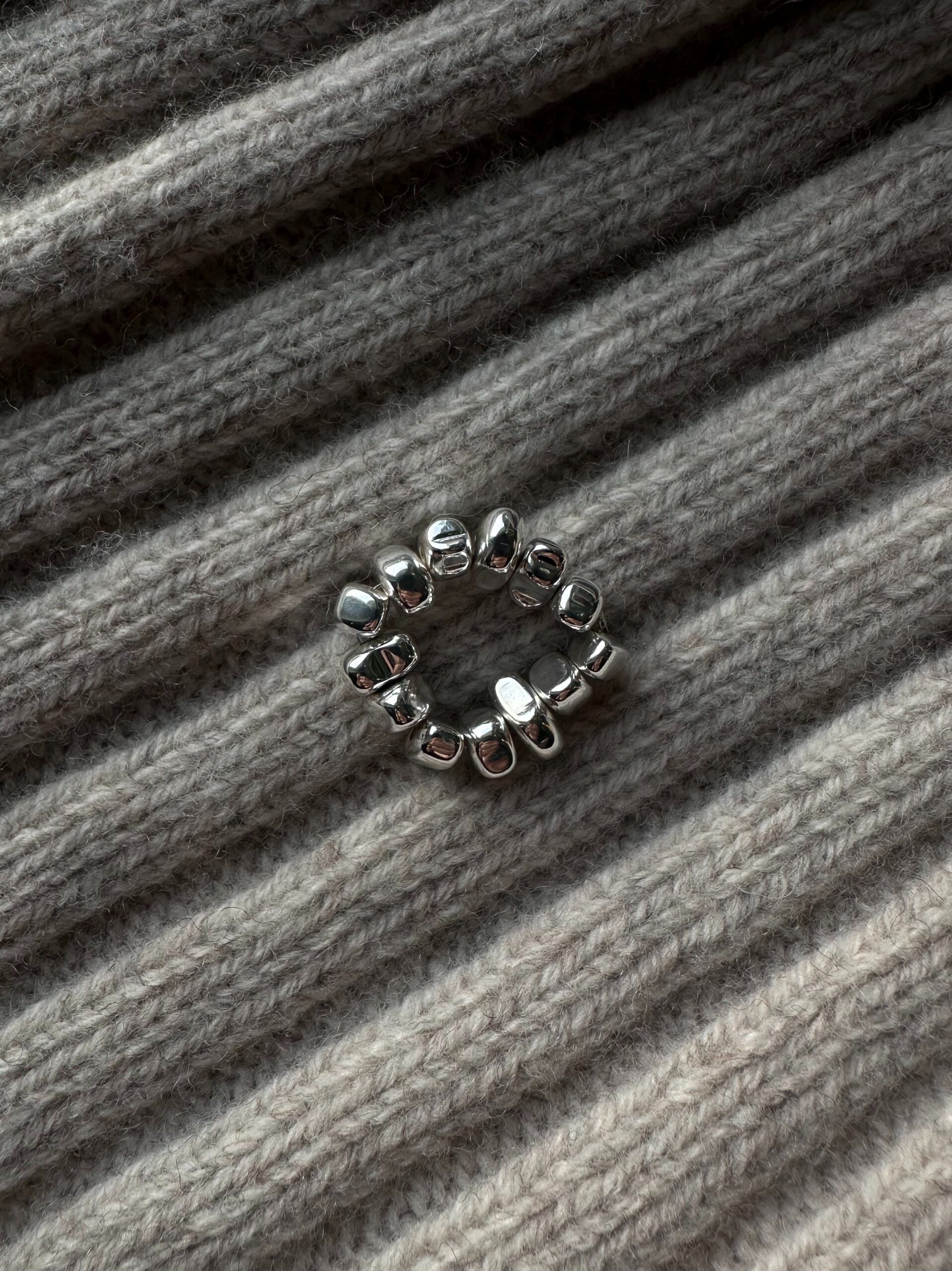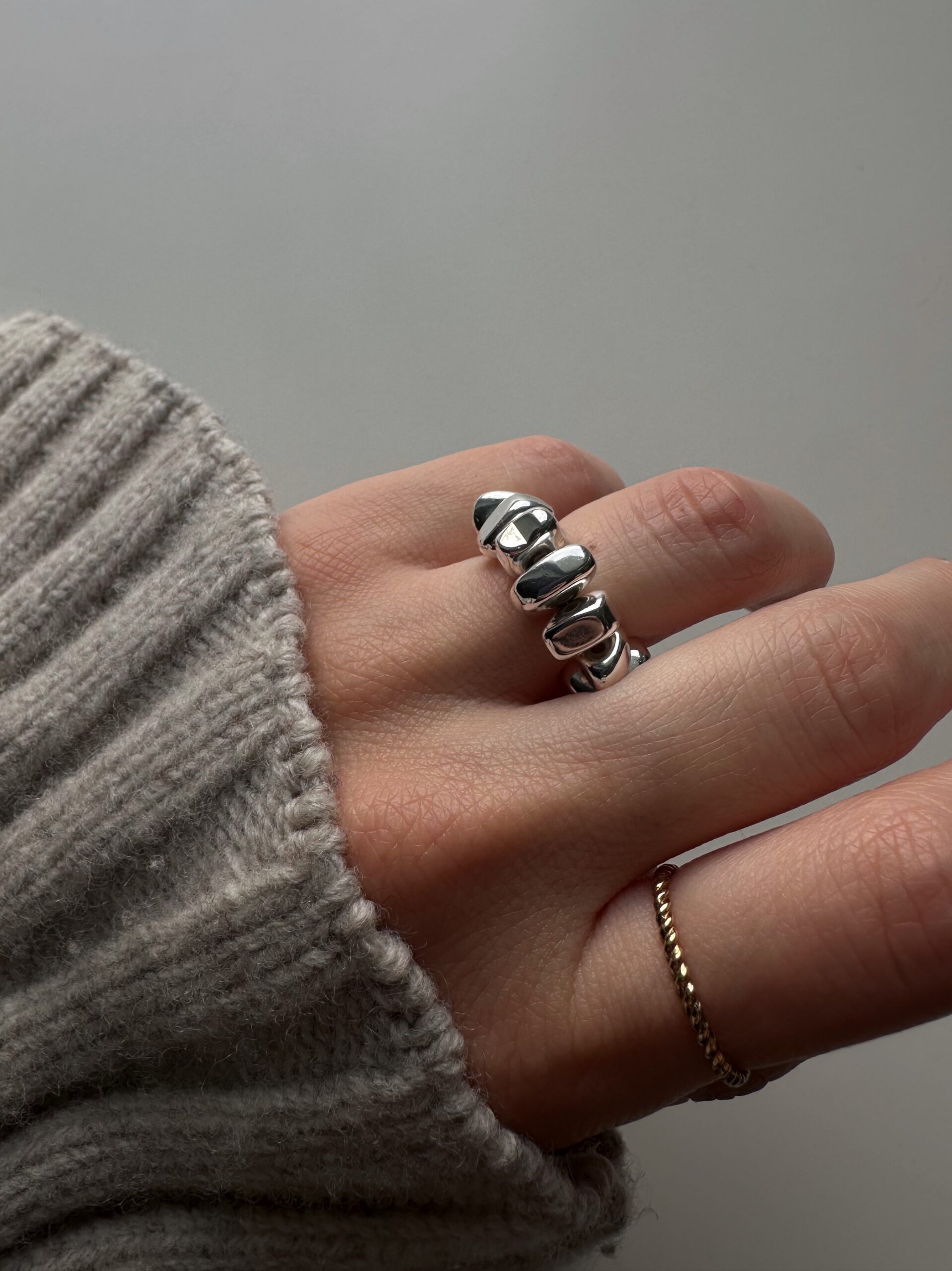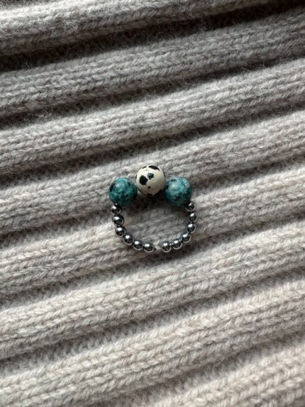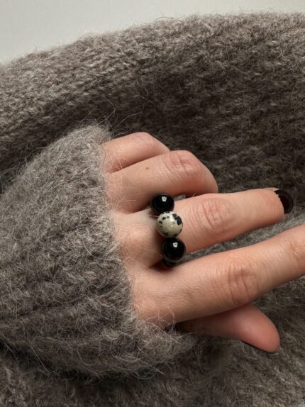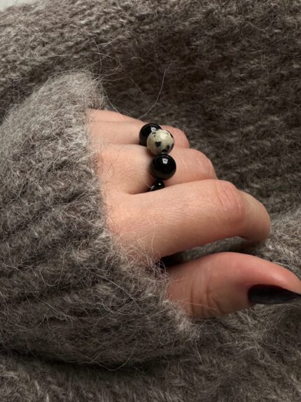 Pierścionek Venom to galwanizowany na srebrny kolor hematyt. Pierścionek nawinięty jest na elastyczną żyłkę jubilerską.